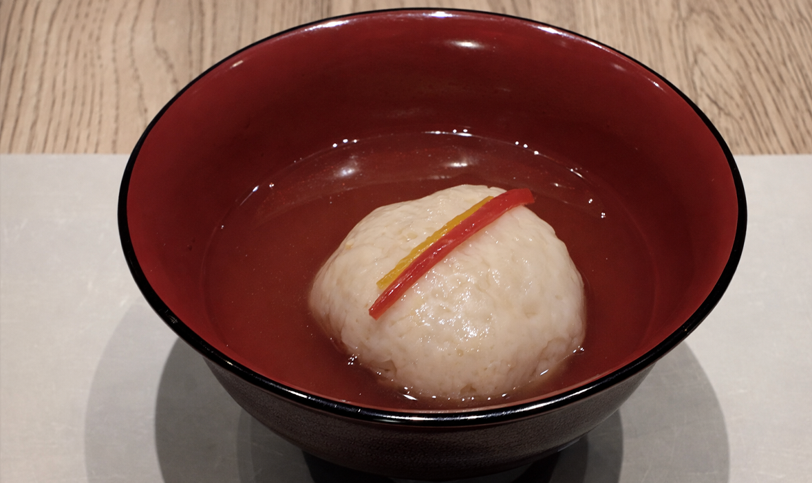 毎月、献立は一度すべて白紙に戻し、その月、その瞬間に最も力を持つ食材と、当店の核である出汁の状態を基準に、構成を組み立てていきます。同じ食材であっても、季節や天候によって旨みの出方は異なり、出汁との相性も日々変化します。その微細な違いを逃さず、一皿ごとに最適なかたちへと仕立てます。